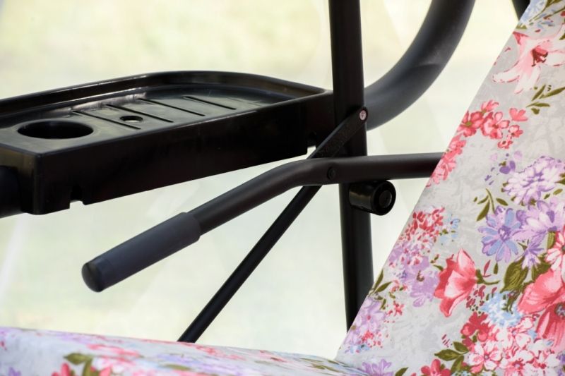 Регулировка спинки: для раскладывания спинки поднимается ручка трансформации и фиксаторы, расположенные на спинке, защелкиваются на дуге.