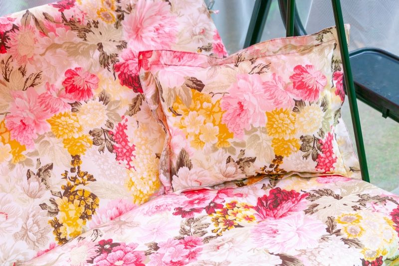 Мягкий элемент: ткань 45% п/э – 55% хлопок, плотность 108-111г/м2, наполнитель мягкого элемента (листовой поролон 50мм+синтепон), наполнитель подушек (крошка поролона).Основание спанбел, декор тафтинг. Подушки – 2шт.