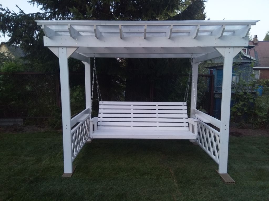 Садовые качели с перголой. Очень удобные и надежные. Большой раскладной диван.