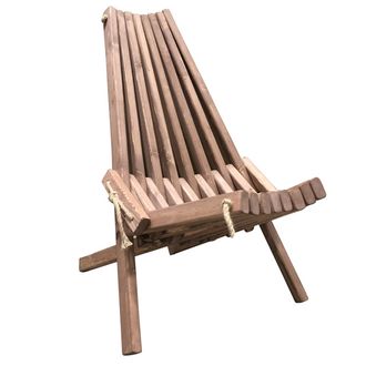 Складной шезлонг "Кентукка". Изготовлен из брус-реек массива сосны, толщиной 30х50 мм. Углы закруглены. Рейки обработаны специальным антисептиком, который защищает древесину от древесных жуков, воздействия ультрафиолета и атмосферных осадков. Рейки скреплены друг с другом джутовым канатом, толщиной 10 мм