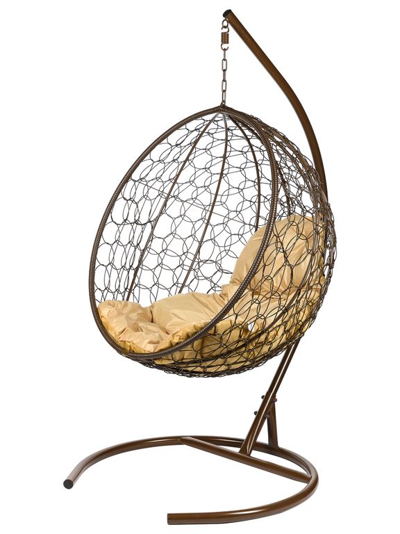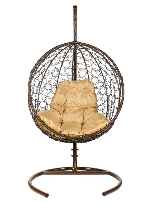 ПОДВЕСНОЕ КРЕСЛО "KOKOS". Плетеное подвесное кресло из линейки «KOKOS», с первого взгляда привлекает к себе внимание. Благодаря своему стильному дизайну и повышенным техническим характеристикам, данная модель весьма популярна среди тех, кто мечтает обустроить у себя дома или на приусадебном участке уголок для комфортного и полноценного отдыха. Подушка выполнена из уличной влагостойкой ткани, она никогда не промокнет. Такое изделие станет прекрасным подарком на любую дату, ведь наш интернет-магазин гарантирует длительный срок эксплуатации. Не упустите свой шанс стать счастливым обладателем этого круглого кресла. Его равномерное покачивание при помощи маятникового механизма, обеспечит вам качественный отдых. Плетеное сидение из высококачественного ротанга, способно выдерживать не только перепады температуры, но и повышенную влажность. Кресло можно оставить на улице под дождем и и снегом, не опасаясь, что оно потеряет свои качества.
