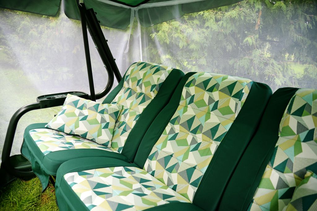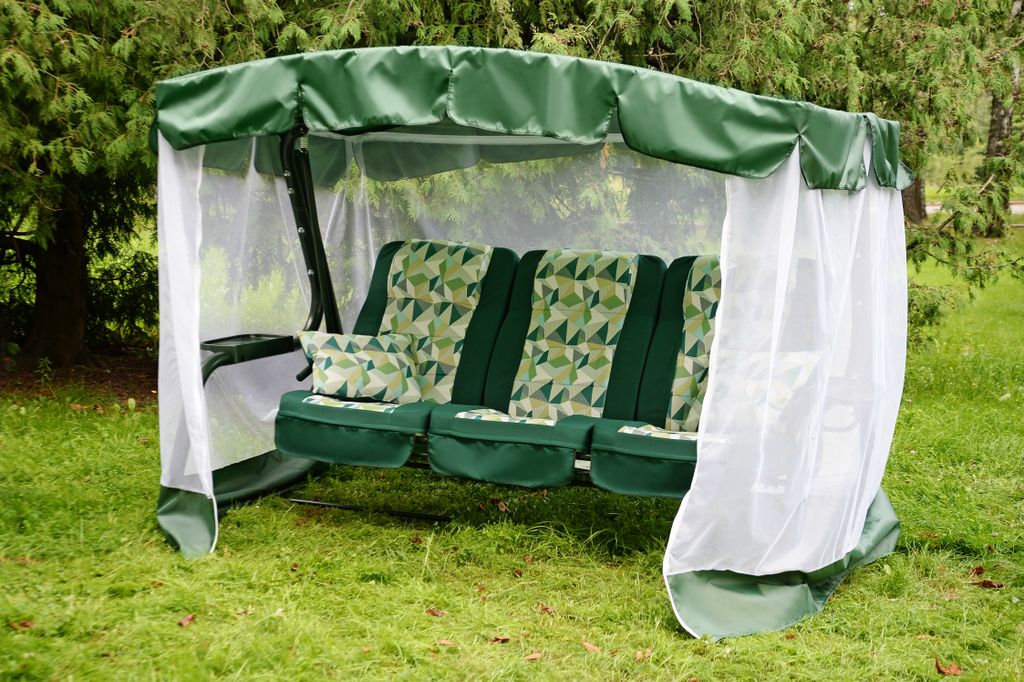 Тент: тент ткань с водоотталкивающей отделкой 100% п/э плотность 125г/м2, с противомоскитной сеткой (полотно гардинное основовязаное 100% п/э плотность 39г/м2) - фиксация сетки на тканевом тенте осуществляется с помощью горизонтальных и вертикальных застежек – «молний».