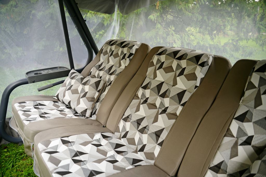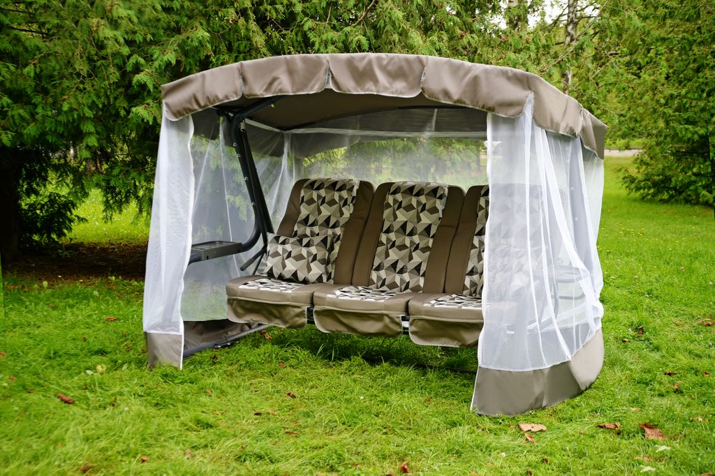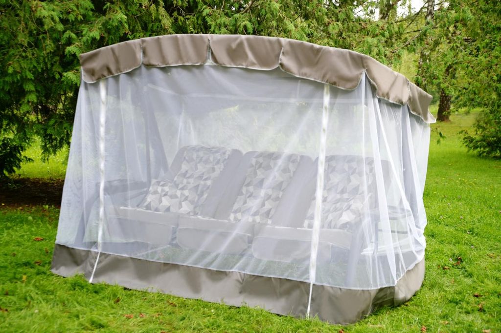 Тент: тент ткань с водоотталкивающей отделкой 100% п/э плотность 125г/м2, с противомоскитной сеткой (полотно гардинное основовязаное 100% п/э плотность 39г/м2) - фиксация сетки на тканевом тенте осуществляется с помощью горизонтальных и вертикальных застежек – «молний».