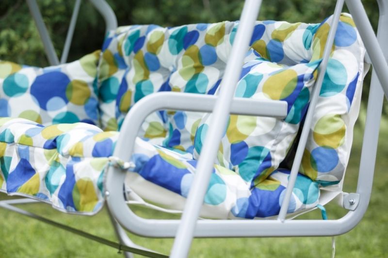 Мягкий элемент: ткань 45% п/э – 55% хлопок, плотность 108-111г/м2, наполнитель мягкого элемента (крошка поролона), наполнитель подушек – (крошка поролона). Подушки – 2шт. Основание сидения ткань полипропиленовая.