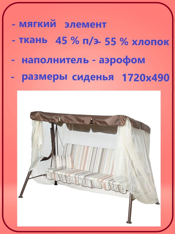 Габаритные размеры сиденья,спинки и тента (длина х ширина), мм: